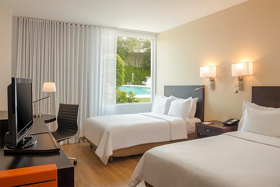 Equipped with 2 double beds or 1 king-size bed, a 29-inch TV, spacious work desk, 2 telephones, and a bathroom with a bath tub, shower and toilet.